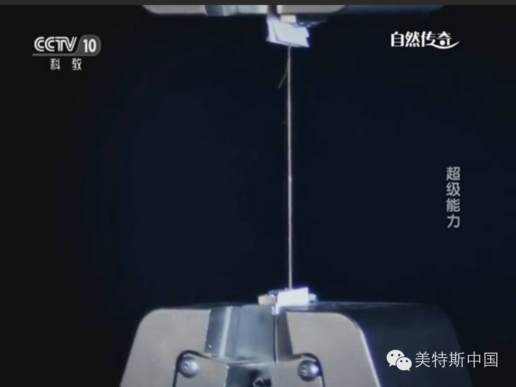 这种比人类头发还要细的东西,其坚韧度是钢的30倍。在MTS Criterion系列万能测试系统的测试下,各种纤维材料都会被进行周密的张力测试。不论是羊毛、椰子毛,还是剑麻,人类至今还没有找到一种可以替代蛛丝的天然纤维材料。